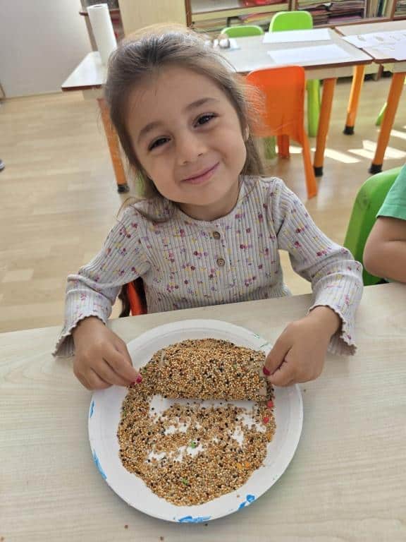 Kuşlar için yemlikler hazırlayarak okul bahçemizdeki ağaçlara astı.